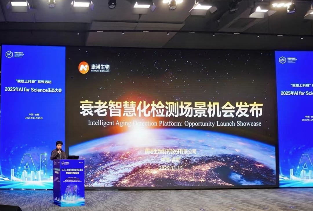 2025年11月15日,由安徽省科學技術廳、合肥市人民政府指導,合肥市科學技術局、中國科學技術大學精準智能化學全國重點實驗室共同主辦的“2025年AI for Science生態大會”(簡稱:AI4S)在安徽人工智能產業先導區舉行。大會匯聚高校、科研機構、龍頭企業、投融資機構等多方力量,共同探討人工智能驅動科學研究的新范式、新機遇,助力合肥打造AI4S科創高地。康諾生物受邀參會,并在大會場景對接環節正式發布衰老智慧化檢測新場景。